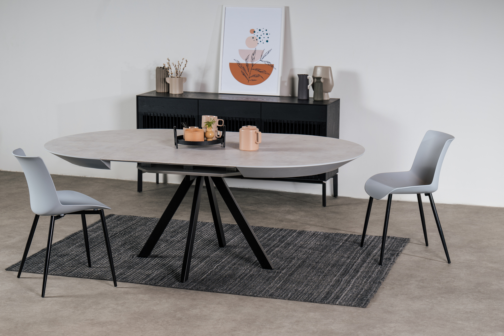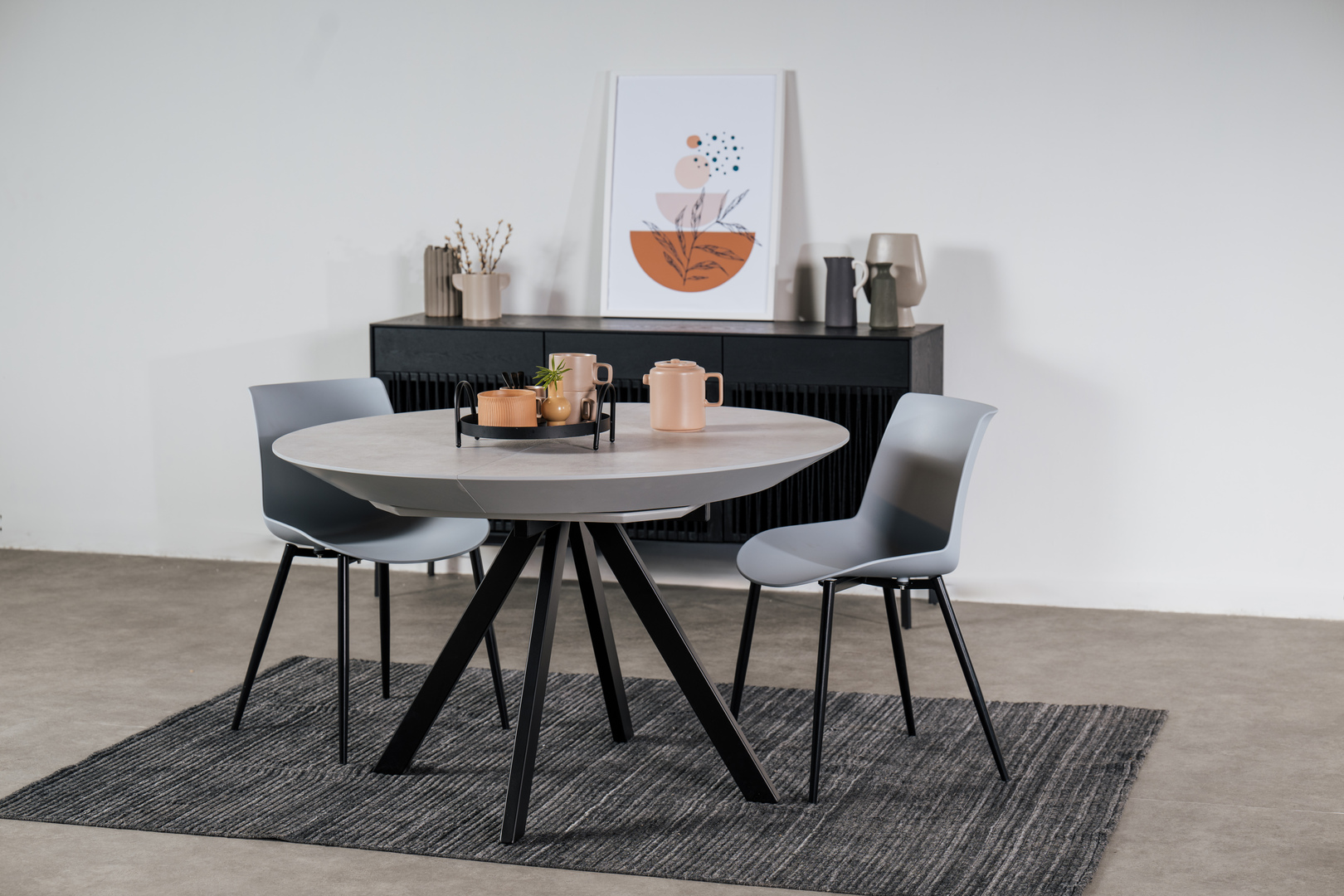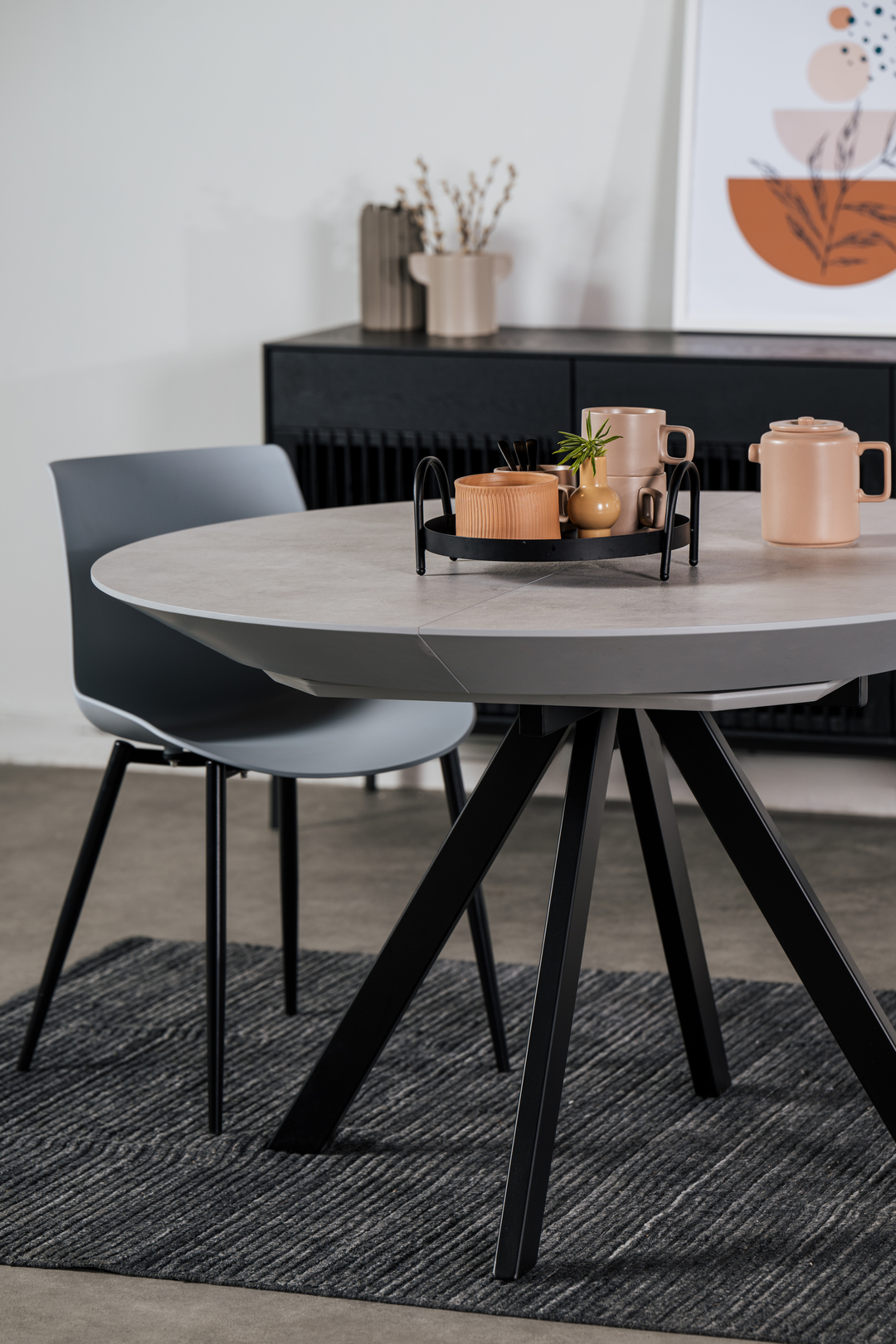 From a relaxed morning coffee to an intimate dinner, the compact Florence dining table offers a clean, modern design complemented by a black iron base.