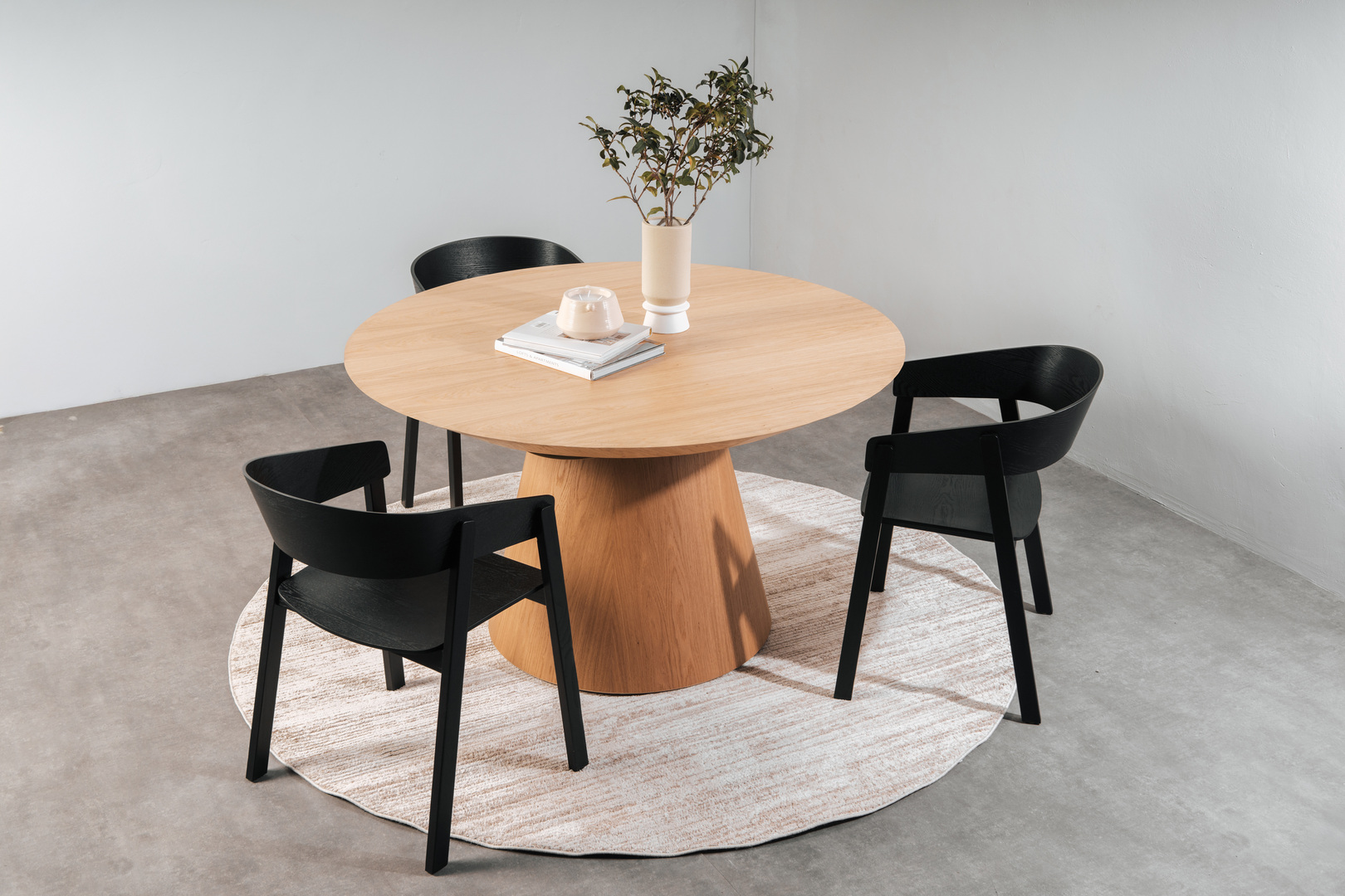 The table includes two 50 cm extensions, both stored inside the table’s structure. This allows you to effortlessly transform it from an intimate round table into a spacious surface for family meals or gatherings with friends.