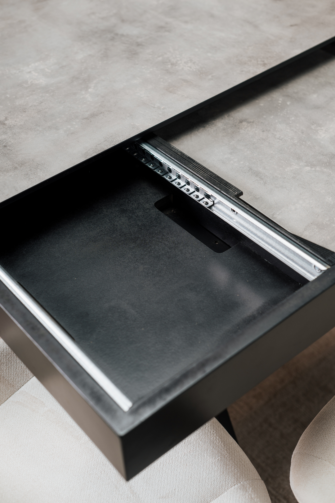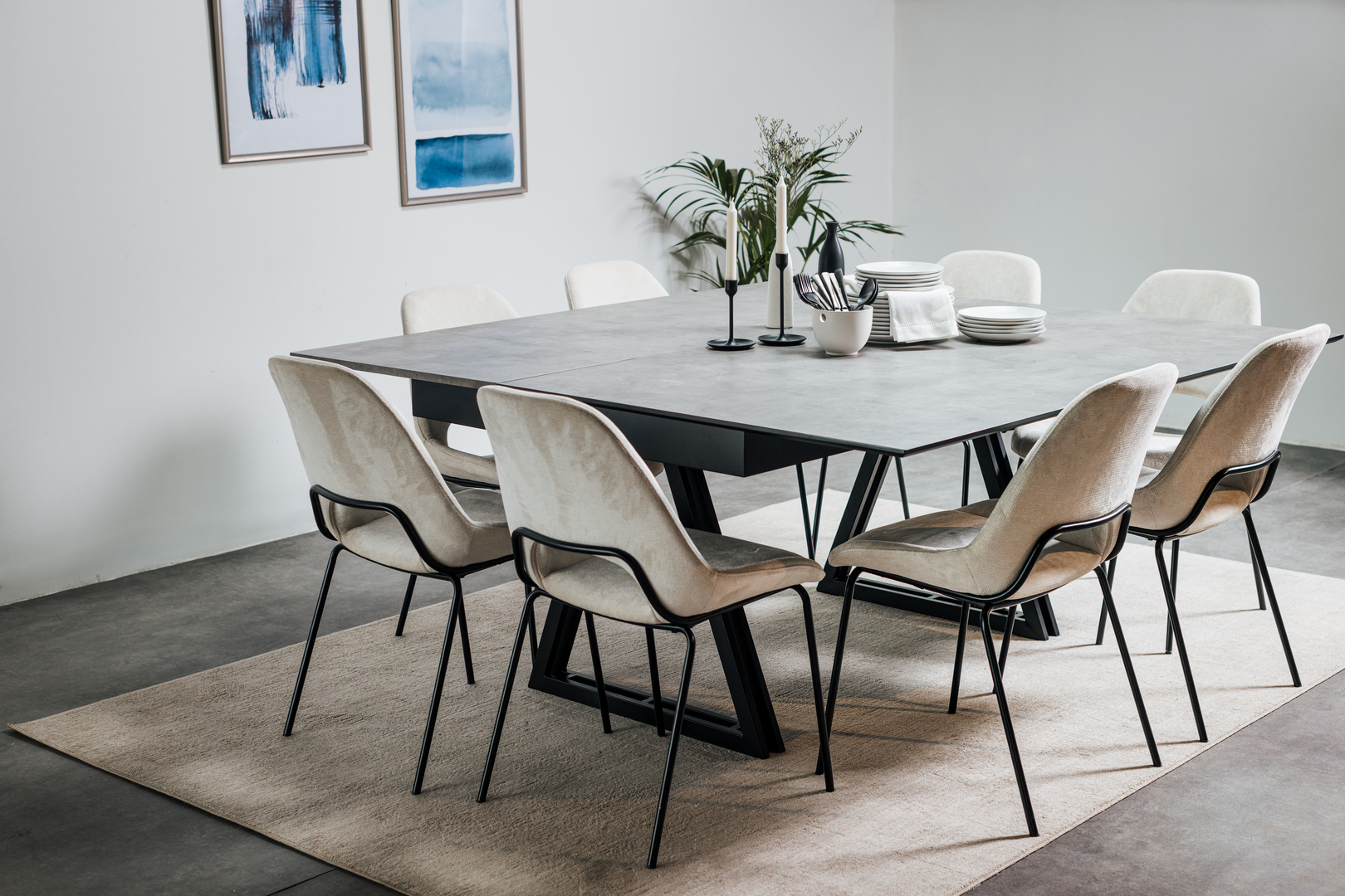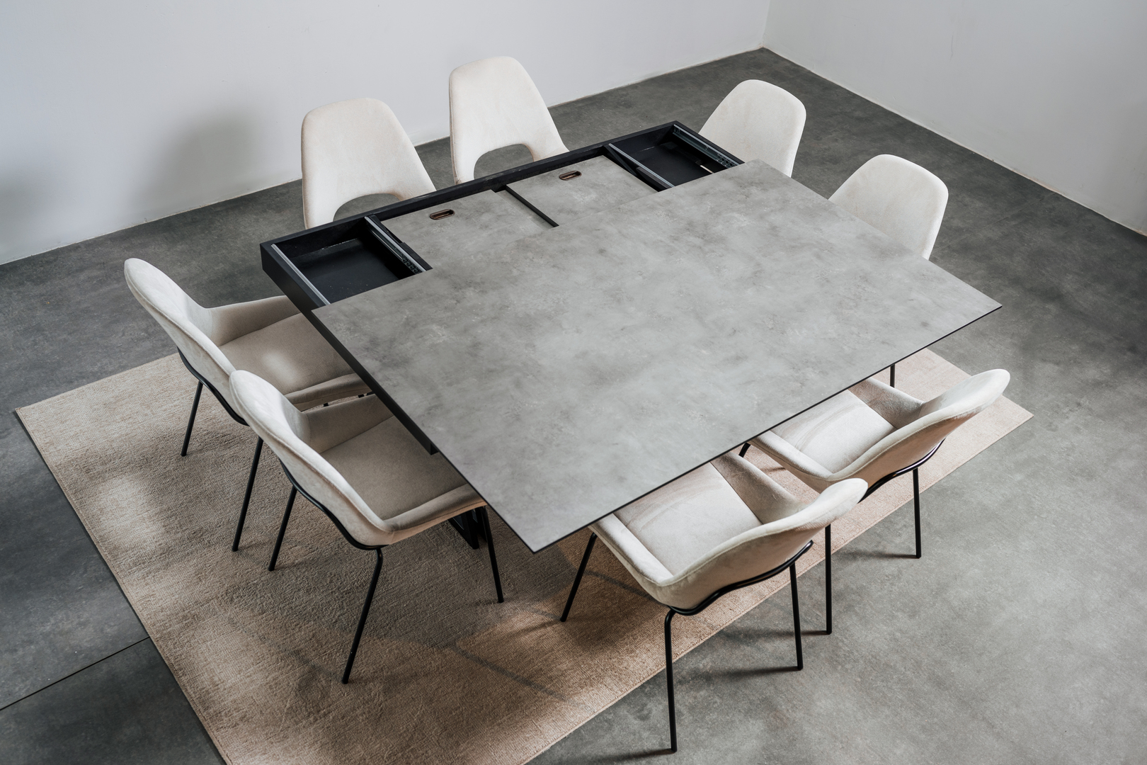 Featuring a rectangular design that opens into a perfect square measuring 1.68 × 1.68 m, it is ideal for hosting up to 12 guests, with three on each side.